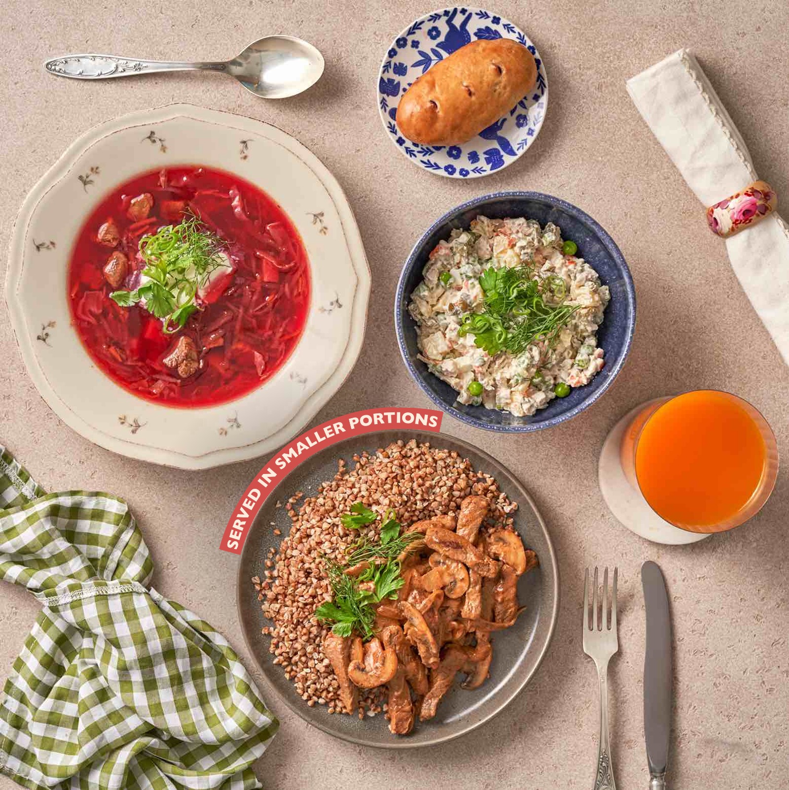 From our hearty borscht to juicy pelmeni! You will definitely feel a sense of nostalgia and imagine yourself to be back in Babushka's kitchen.